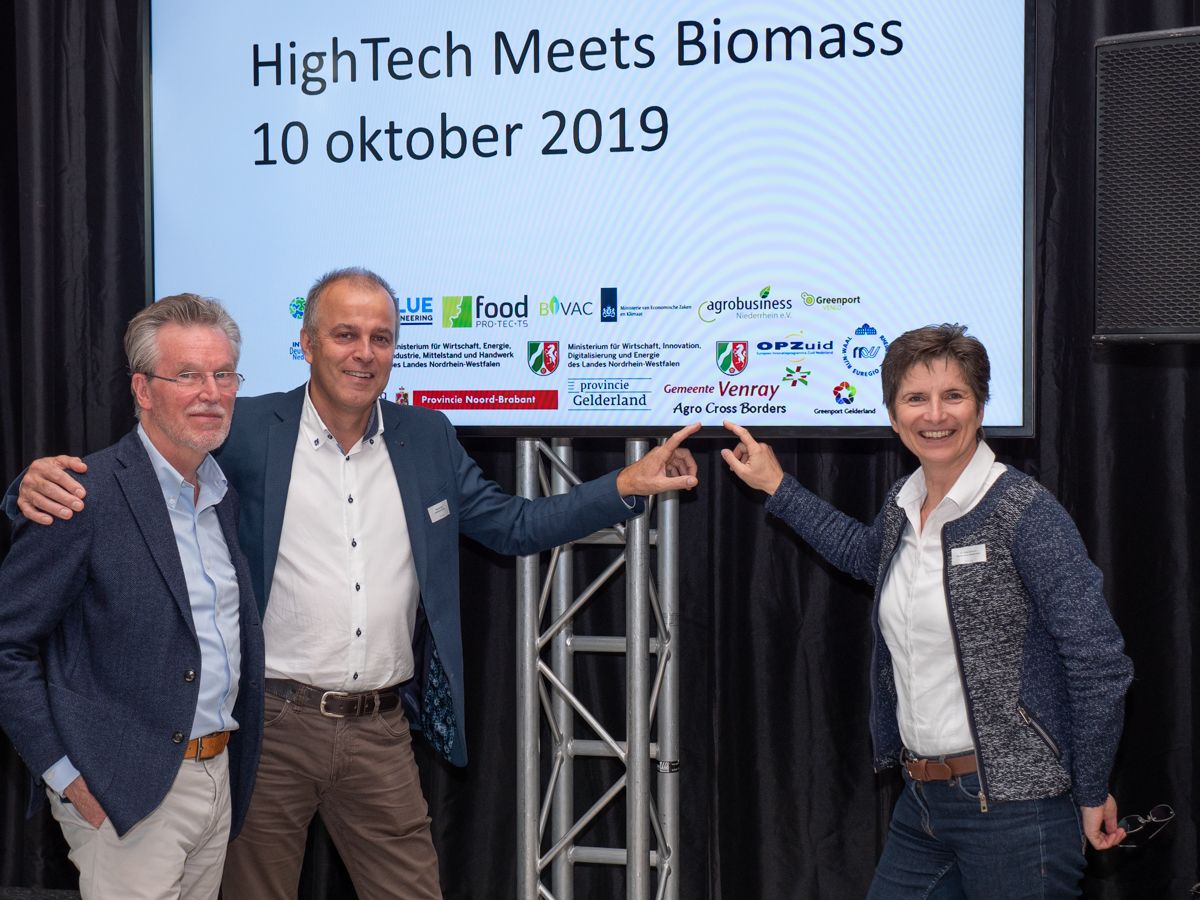 Jan van Hees, Marcel Claus (beide Greenport Venlo und Gemeinde Venray) und Dr. Anke Schirocki arbeiten zusammen mit Greenport Gelderland im Projekt „AgroCrossBorders“. Die Veranstaltung „HighTech meets biomass“ wurde im Rahmen dieses Projekts durchgeführt und hat das Ziel den deutsch-niederländischen Austausch zu fördern. „AgroCrossBorders“ ist bis Ende des Jahres konzipiert aber die Zusammenarbeit geht weiter. In diesem Jahr hat das Projekt „Wachstum und Entfaltung zur Agropole“ eine Bewilligung erfahren und im Rahmen dieses INTERREG-Projekts wird ein deutsch-niederländisches Netzwerk im Agrobusiness aufgebaut und mit Leben erfüllt. „Die Zusammenarbeit geht weiter und erhält eine kontinuierliche Basis. Darüber freuen wir uns sehr, denn gemeinsam kann man immer noch mehr erreichen als nebeneinander“, sagt Marcel Claus.