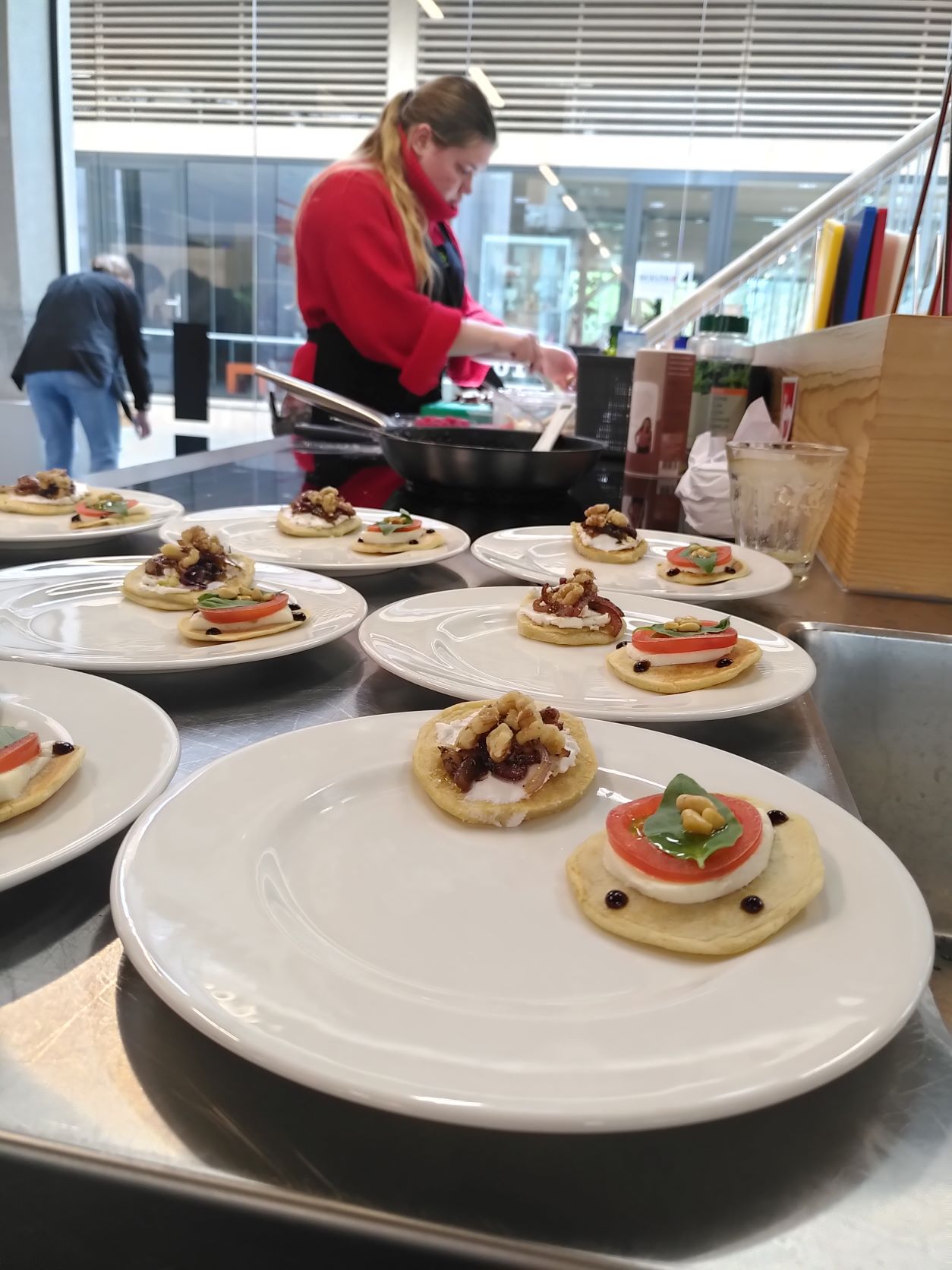 Innerhalb von acht Wochen entwickelten die Studierenden in Kleingruppen fleischlose Slow-Food-Produkte, die sie selber im „Cooking Lab“ der Villa Flora zubereiteten. Die HAS Hochschule lud gemeinsam mit dem deutsch-niederländischen INTERREG-Projekt „Agropole“ Interessierte zu einer Verkostung ein, um die Ergebnisse der Studierenden zu bewerten und Feedback für die Weiterentwicklung zu geben. Dieser Einladung folgten lebensmittelverarbeitende Unternehmen, eine Landwirtin aus der Schweinemast sowie weitere Interessierte aus dem Agrobusiness.