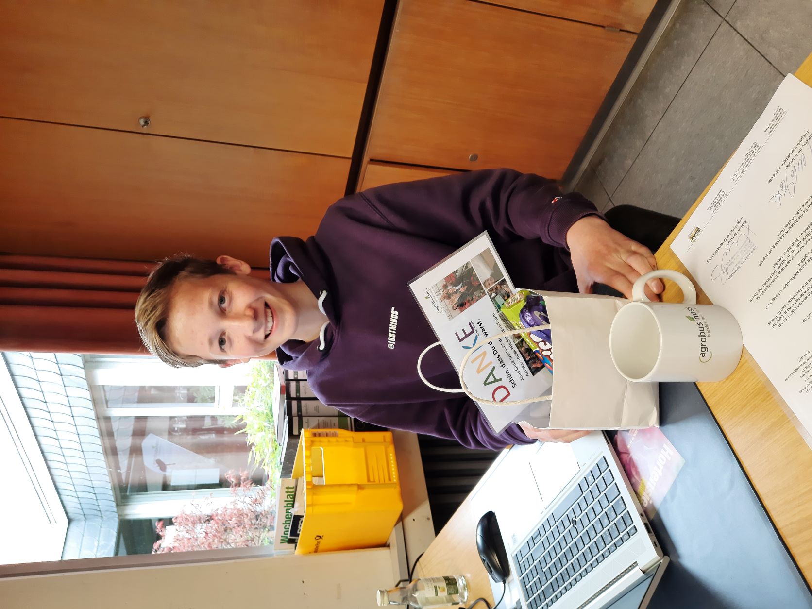Um dem Fachkräftemangel entgegenzuwirken wird immer wieder an Unternehmen appelliert, auch Schülerinnen und Schülern die Möglichkeit zu bieten, ein Praktikum zu absolvieren. So können sie Einblicke in Berufe erlangen und sich während ihrer Schulzeit bereits gezielter mit der späteren Berufswahl auseinandersetzen. Ende letzten Jahres stellte unsere Mitarbeiterin Simone de la Motte dazu gemeinsam mit der Initiative baseL aus Nettetal einen Praktikumsleitfaden zusammen. Im April konnte die Geschäftsstelle von Agrobusiness Niederrhein dann selber davon Gebrauch machen. Zum ersten Mal hatten wir zwei Wochen lang einen Schülerpraktikanten zu Gast: Geert Biewenga. Eine spannende Erfahrung, nicht nur für den 16-jährigen Schüler des städtischen Gymnasiums in Straelen. Durch Familienangehörige, die in Landwirtschaft und Gartenbau arbeiten, sowie eigene Erfahrungen durch Nebenjobs und Praktika in der Branche, hatte Geert bereits Vorkenntnisse und einen guten Überblick.