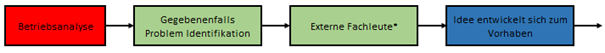 Wenn ausreichend Informationen zusammengetragen sind, verfestigt sich die Idee und wird zu einem Vorhaben (Schritt 5 in Grafik), das dann einer Kosten- Risikoabwägung unterzogen wird (Kosten- und Risikoabwägung in Grafik).